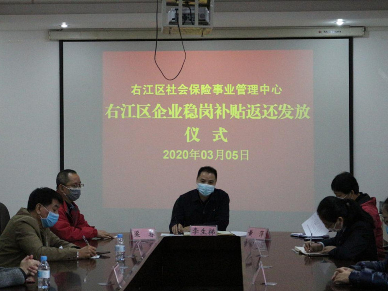 ??? 3月5日,在右江區(qū)社會保險事業(yè)管理中心召開穩(wěn)崗補貼返還工作會議暨企業(yè)穩(wěn)崗補貼返還發(fā)放儀式,我公司作為首批返還企業(yè)代表之一應邀參加,會上社保中心主任李生梯對我公司響應穩(wěn)崗補貼政策給予高度肯定,期望通過穩(wěn)崗補貼返還為公司的穩(wěn)定復產(chǎn)助力。截止目前,我公司有8家子公司符合享受失業(yè)保險穩(wěn)崗返還補貼條件,獲得穩(wěn)崗返還補貼3.6萬元,惠及企業(yè)員工約150人。(通訊員:黃 芬)