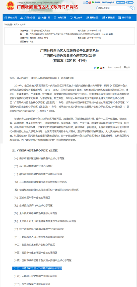 日前,自治區(qū)人民政府決定授予全區(qū)25個現(xiàn)代特色農(nóng)業(yè)核心示范區(qū)“廣西現(xiàn)代特色農(nóng)業(yè)核心示范區(qū)(三星級)”稱號,百色市右江區(qū)六沙柑橘產(chǎn)業(yè)核心示范區(qū)榜上有名。