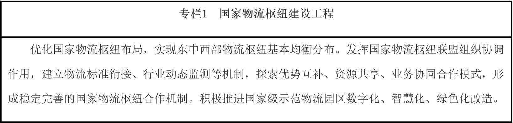 ——“通道+樞紐+網(wǎng)絡”運行體系基本形成。銜接國家綜合立體交通網(wǎng)主骨架,完成120個左右國家物流樞紐、100個左右國家骨干冷鏈物流基地布局建設,基本形成以國家物流樞紐為核心的骨干物流基礎設施網(wǎng)絡。物流干支倉配一體化運行更加順暢,串接不同運輸方式的多元化國際物流通道逐步完善,暢聯(lián)國內國際的物流服務網(wǎng)絡更加健全。樞紐經濟發(fā)展取得成效,建設20個左右國家物流樞紐經濟示范區(qū)。