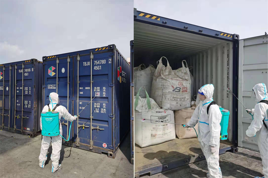 圖為貨物到達國際貿(mào)易港及清關(guān)消殺