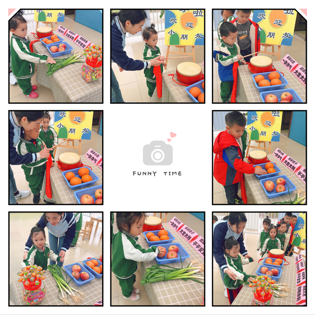 ????????上午7時40分,孩子們在家長的陪同下來到幼兒園大門口,進園時敲響飽含濃濃祝福的小鼓,用小手觸摸大蔥、蘋果、桔子、棒棒糖,傳遞著益眾幼兒園對孩子濃濃的愛意和深深的祝福。