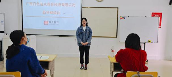 ??? 近日,為進一步加強新教師的培訓管理,提高新教師在理論學習、師德師風建設、學生管理等方面的素質,盡快適應公司的工作環(huán)境,廣西百色益眾教育投資有限公司結合公司教師職業(yè)特點和要求,組織開展新教師入職培訓。參加培訓的新員工是首批公司春季招聘30多名求職者中的佼佼者,來自北京師范大學、廣西師范大學等區(qū)內外一流高等學府。本次培訓主要圍繞企業(yè)文化、綜合能力、教師技能、實戰(zhàn)演練等方面開展。