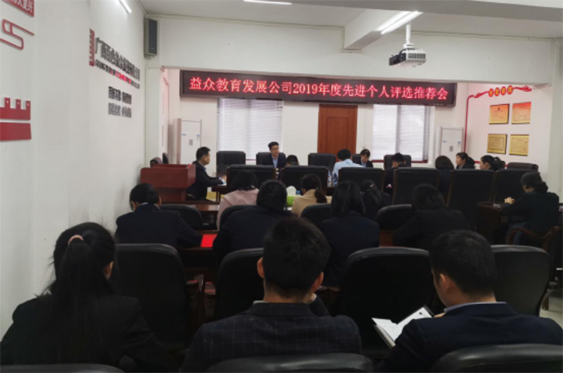 為進(jìn)一步提高干部職工的凝聚力和戰(zhàn)斗力,樹(shù)立典型,發(fā)揮先鋒模范作用,根據(jù)公司總部的《2019年度先進(jìn)集體、先進(jìn)個(gè)人評(píng)選表彰工作方案》文件要求,益眾教育公司組織開(kāi)展2019年度評(píng)先評(píng)優(yōu)工作,公司本部、下屬公司全體管理人員參會(huì)。評(píng)先評(píng)優(yōu)工作本著公開(kāi)、公平、公正的原則,以實(shí)事求是的態(tài)度,通過(guò)不記名投票方式進(jìn)行評(píng)選,選拔出一批政治素質(zhì)高、崗位技能強(qiáng)、工作完成滿意度佳、群眾評(píng)價(jià)好的先進(jìn)員工。