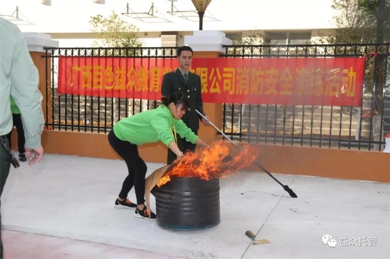 ? ? ? ?為進一步提高員工消防安全防范意識,增強員工對突發(fā)火災的應急處置能力,根據(jù)《廣西百色益眾教育發(fā)展有限公司2018年消防宣傳月活動方案》安排,2018年11月8日,廣西百色益眾教育發(fā)展有限公司聯(lián)合百色市市安防火中心在我司承接托管業(yè)務的百色市第一小學校區(qū)開展了"防災減災進校園 ?自防自救保安全"消防安全培訓活動。本次活動結(jié)合近年來發(fā)生的典型火災案例,將消防知識和學校、學生安全緊密聯(lián)系起來,深入剖析了火災案例的教訓并詳細的講解了火災類型、火災成因、火災最佳處置時機、應急疏散跟自救逃生方法、各類滅火器材的使用等消防知識。為加深廣大員工對理論知識的理解,讓防災減災意識"入腦入心",本次活動還相應開展了現(xiàn)場初期火災處置演練。通過本次活動,廣大員工的消防安全意識得到了進一步提高,應急疏散和避險能力有了質(zhì)的飛躍,為我司更好的為學校、學生提供貼心服務打下了良好的基礎。