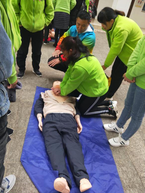 培訓(xùn)老師現(xiàn)場教導(dǎo)學(xué)員開展應(yīng)急救護實操