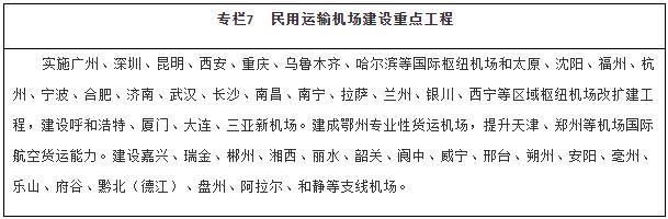 擴大航空網(wǎng)絡覆蓋。推動區(qū)域機場群協(xié)同發(fā)展,建設京津冀、長三角、粵港澳大灣區(qū)、成渝等世界級機場群。適時啟動能力緊張樞紐機場改擴建工程,強化樞紐機場綜合保障能力。合理加密機場布局,穩(wěn)步建設支線機場和專業(yè)性貨運樞紐機場,提升綜合性機場貨運能力和利用率。有序推進通用機場規(guī)劃建設,構(gòu)建區(qū)域短途運輸網(wǎng)絡,探索通用航空與低空旅游、應急救援、醫(yī)療救護、警務航空等融合發(fā)展。優(yōu)化航路航線網(wǎng)絡,加強軍民航空管基礎設施建設,推廣應用空管新技術(shù)。
