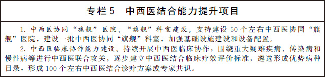 加強中西醫(yī)結(jié)合醫(yī)院服務(wù)能力建設(shè)。建立符合中西醫(yī)結(jié)合醫(yī)院特點和規(guī)律的績效評價指標(biāo)體系,修訂中西醫(yī)結(jié)合醫(yī)院工作指南。加強中西醫(yī)結(jié)合醫(yī)院業(yè)務(wù)用房等基礎(chǔ)設(shè)施建設(shè),強化設(shè)備配置。開展中西醫(yī)結(jié)合學(xué)科和專科建設(shè),促進(jìn)中西醫(yī)聯(lián)合診療模式改革創(chuàng)新。