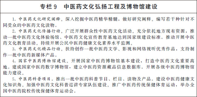 2.發(fā)展中醫(yī)藥博物館事業(yè)。開展國家中醫(yī)藥博物館基本建設(shè),建成國家中醫(yī)藥數(shù)字博物館。促進(jìn)中醫(yī)藥博物館體系建設(shè),強化各級各類中醫(yī)藥博物館收藏研究、社會教育、展覽策劃和文化服務(wù)功能,加強數(shù)字化建設(shè),組織內(nèi)容豐富的中醫(yī)藥專題展覽。